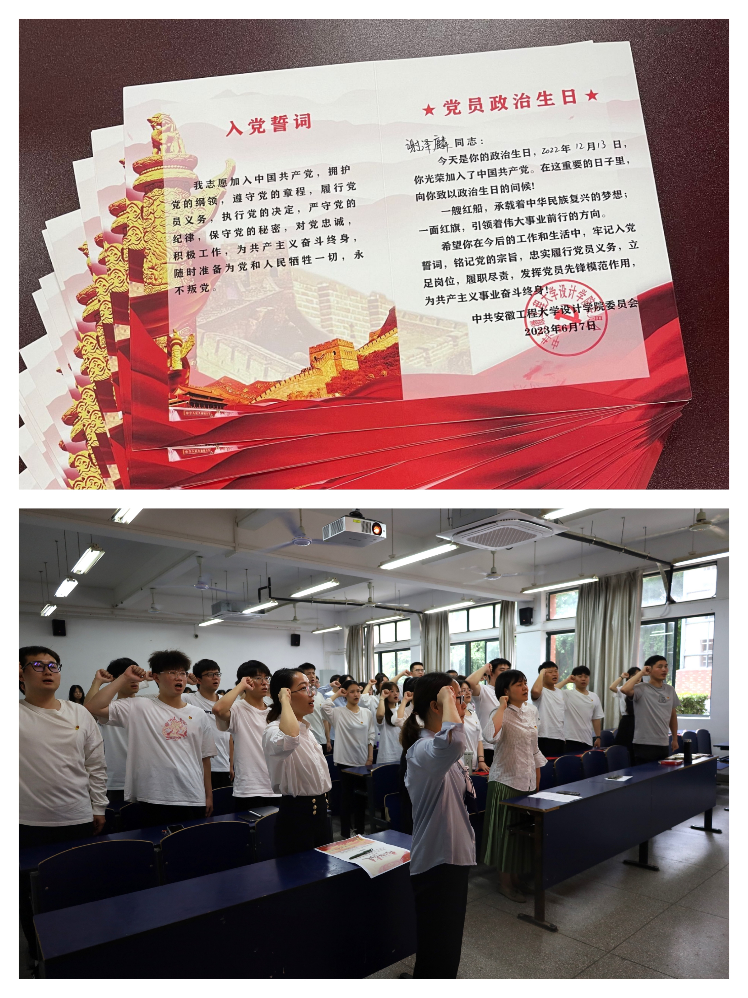 毕业生党员在离校前接受一次严格的党性教育是加强大学生党员教育的重要环节。为教育引导全体毕业生党员学思想,强党性,深刻领会“两个确立”的决定性意义,增强“四个意识”、坚定“四个自信”、做到“两个维护”,恪守对党的忠诚,永葆初心,砥砺前行,不懈奋斗,坚守好一名共产党员的操守和品质。设计学院通过开展政治生日教育、重温一次入党誓词、创新志愿服务等活动,多维度开展毕业生党员离校集中党性教育工作。