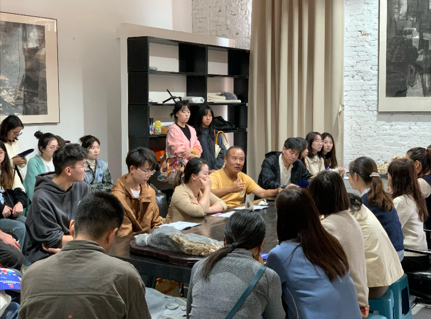 设计学院注重发挥设计学科专业优势,紧扣“设计+乡村振兴”,组织师生积极投入乡村建设行动。在设计学院承杰教授的引领下,师生们走进他创建的“七房艺术粮仓”,参观了设计学院王军老师的油画展和七房村崭新的村容村貌。从以前的空心村到现在声名远播的艺术村,艺术家们把闲置农房盘活,形成一个“艺术家村落”。师生们沉浸式、全景式、多视角认知和了解了乡村文化产业新样态,让“小课堂”走进“大环境”,激发了同学们用自己的专业知识回馈乡村、建设家乡的热情,拓宽全环境立德树人的新思路。副院长王小元说:“我们将努力把立德树人的课堂建在乡村田野,鼓励师生把教学实践、创新创业带到乡村,让同学们能把专业学习、个人发展和乡村振兴实践结合起来,推动人才资源向乡村设计积聚,鼓励学生将专业学习与乡村设计实践结合,真题真做,助力乡村振兴建设,发挥艺术设计在乡村振兴中的作用。”