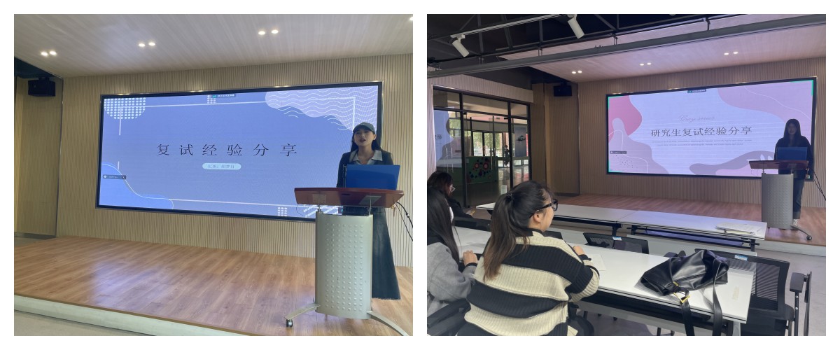 三位往届录取的研究生从时间把握、资料准备、心态调整、笔试、面试以及后期调剂等方面开展了细致全面的讲解,将自己总结的“备考宝典”全盘托出,并围绕大家关心的问题进行了详细解答,使同学们对复试及调剂流程和方法有了更加清晰和全面的认识。