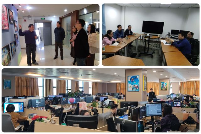 3月31日,设计学院党委书记胡家增、副书记彭海燕与新媒体设计系教师陈党、黄卫国、马琳珠一行5人赴华强方特芜湖动漫有限公司走访调研、访企拓岗。
