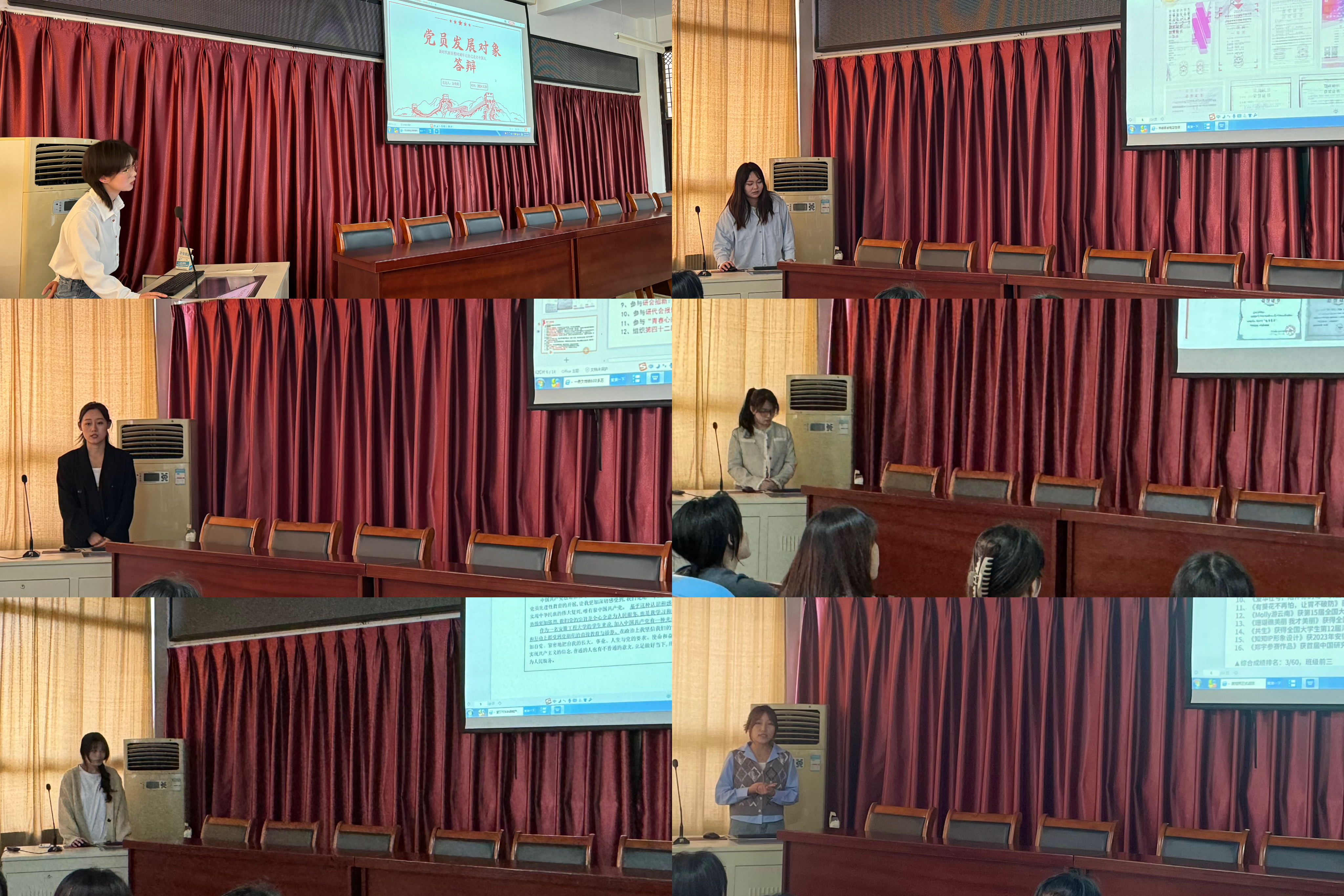 答辩会上,6名拟发展对象依次登台,分别从对党的认识、入党动机、模范作用发挥、个人不足与改进、近期的思想政治方面的学习情况等各个方面进行了汇报。支部委员听取了每位拟发展对象的汇报后,对拟发展对象的理论与政治素养进行了提问考察。