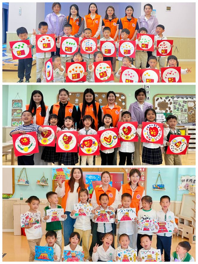 参加活动的研究生党员志愿者充分利用幼儿园延时课服务这一平台,通过展示以五星红旗、天安门等红色元素为主的绘画作品,带领孩子们亲手绘制红色主题画作,发挥他们的想象力与创造力,以绘画的方式表达对红色基因的理解和传承。活动开展前,研究生第三党支部书记田蓓蓓,支委童斐雯、强琪多次指导志愿者针对不同班级的学生进行细致的学情分析,为大中小各班级分别设计了题为《爱我中国》《信仰的颜色是中国红》《红心映国旗》的教学课件,多次组织练课磨课。在活动中,孩子们表现出了极高的热情和创造力,他们用心绘制了一幅幅充满童趣和红色元素的画作,充分展示了他们对红色基因的理解与认同。