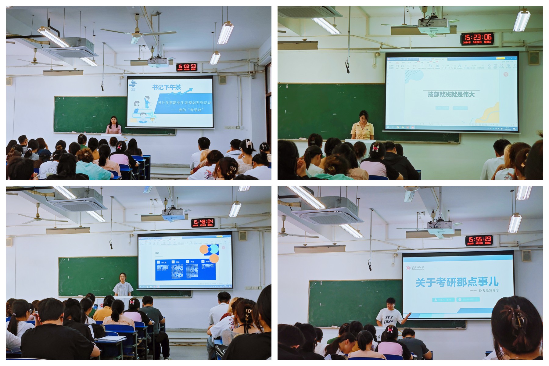 现场互动交流气氛热烈,参加活动的同学们纷纷表示受益匪浅,对就业和考研有了更加清晰的认识和规划,将更加努力地学习专业知识,积累实践经验,为未来的职业发展和升学深造打下坚实的基础。学院将持续关注学生的生涯规划和全面发展,为学生提供更加优质的实习就业资源和个性化指导,帮助学生更好地规划未来的学业和发展道路。