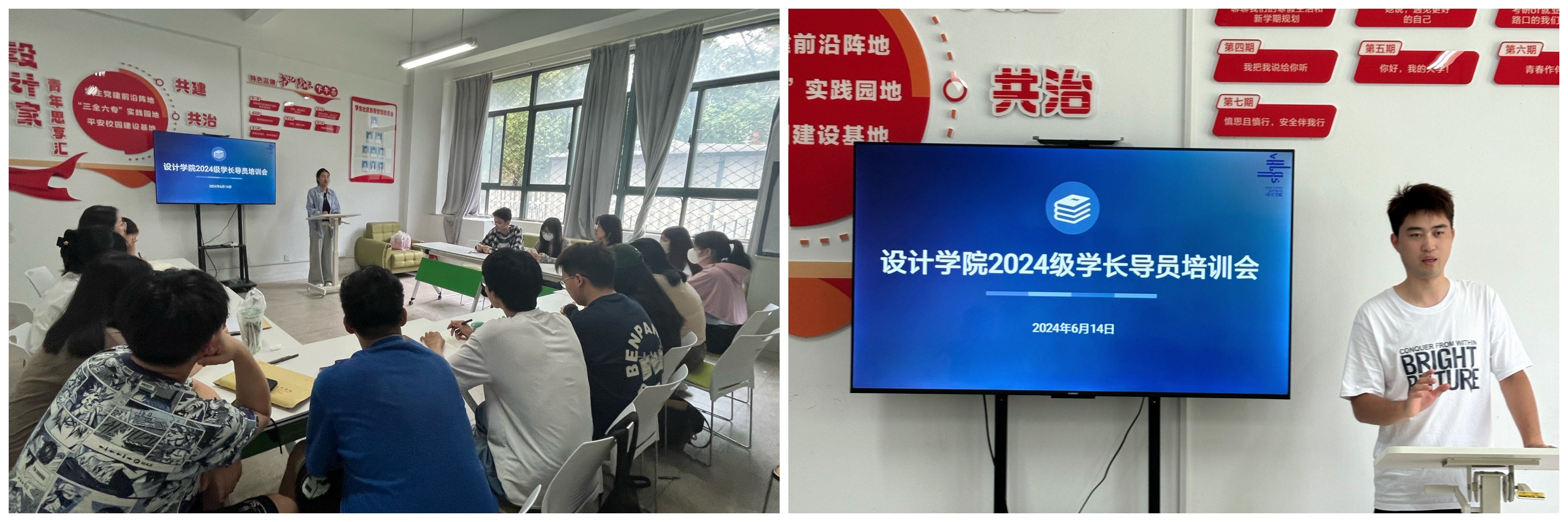 为进一步落实学校“三全六专”工作要求,提升学长导员的综合能力,引导学长导员更好发挥传、帮、带作用。6月14日,设计学院召开2024级学长导员培训会,辅导员姚丽、李荣杰、顾安骏,2023级优秀学长导员赵绍春、李鑫瑶和2024级新生学长导员参加。