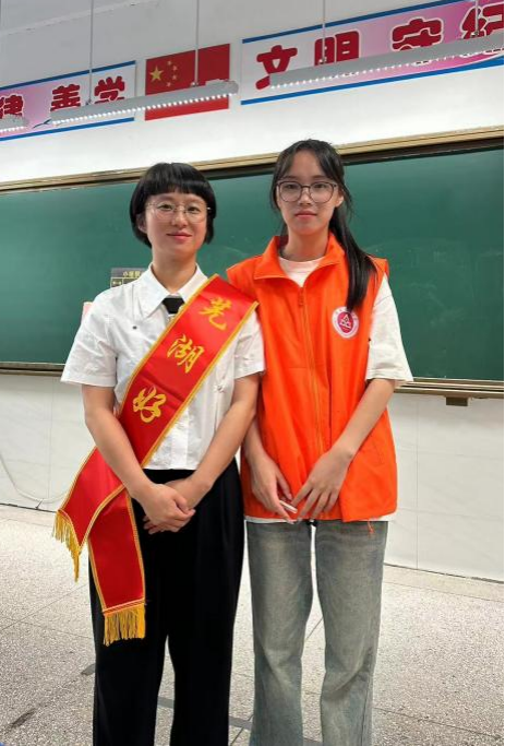 设计学院广告学专业的10名大学生,在视觉传达设计系教师党支部副书记苏杨的带领下,身着橘色志愿者服装,成为活动现场的一道亮丽风景线。他们不仅是采访志愿者,更是创新教学模式的实践者。在这次活动中,学生们将《创意写作》课程的理论知识与实践相结合,全程带队,指导小学生记者进行采访活动。他们运用课程中学到的采访技巧,培训小记者如何提问、记录和观察,与道德模范进行深入交流,成为连接道德模范与小记者的桥梁。