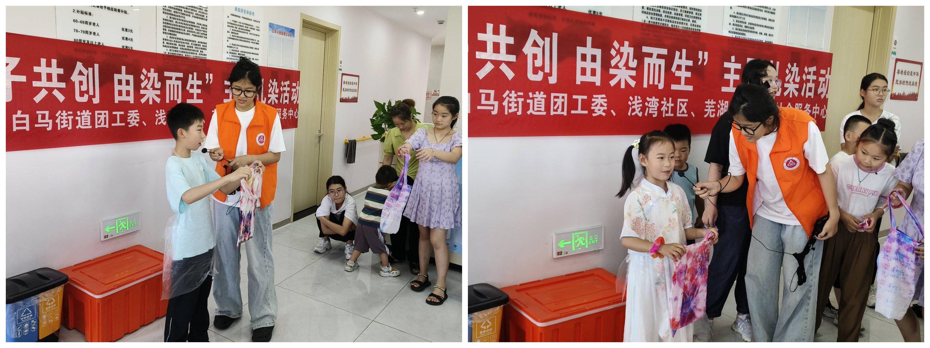 在炎炎夏日里,设计学院团委积极响应暑期“三下乡”活动的号召,于7月6日联合白马街道浅湾社区成功举办了一场别开生面的扎染志愿服务活动。此次活动以“亲子共创,由染而生”为主题,旨在通过扎染这一传统手工艺,增进亲子间的情感交流,同时传承和弘扬中华优秀传统文化。