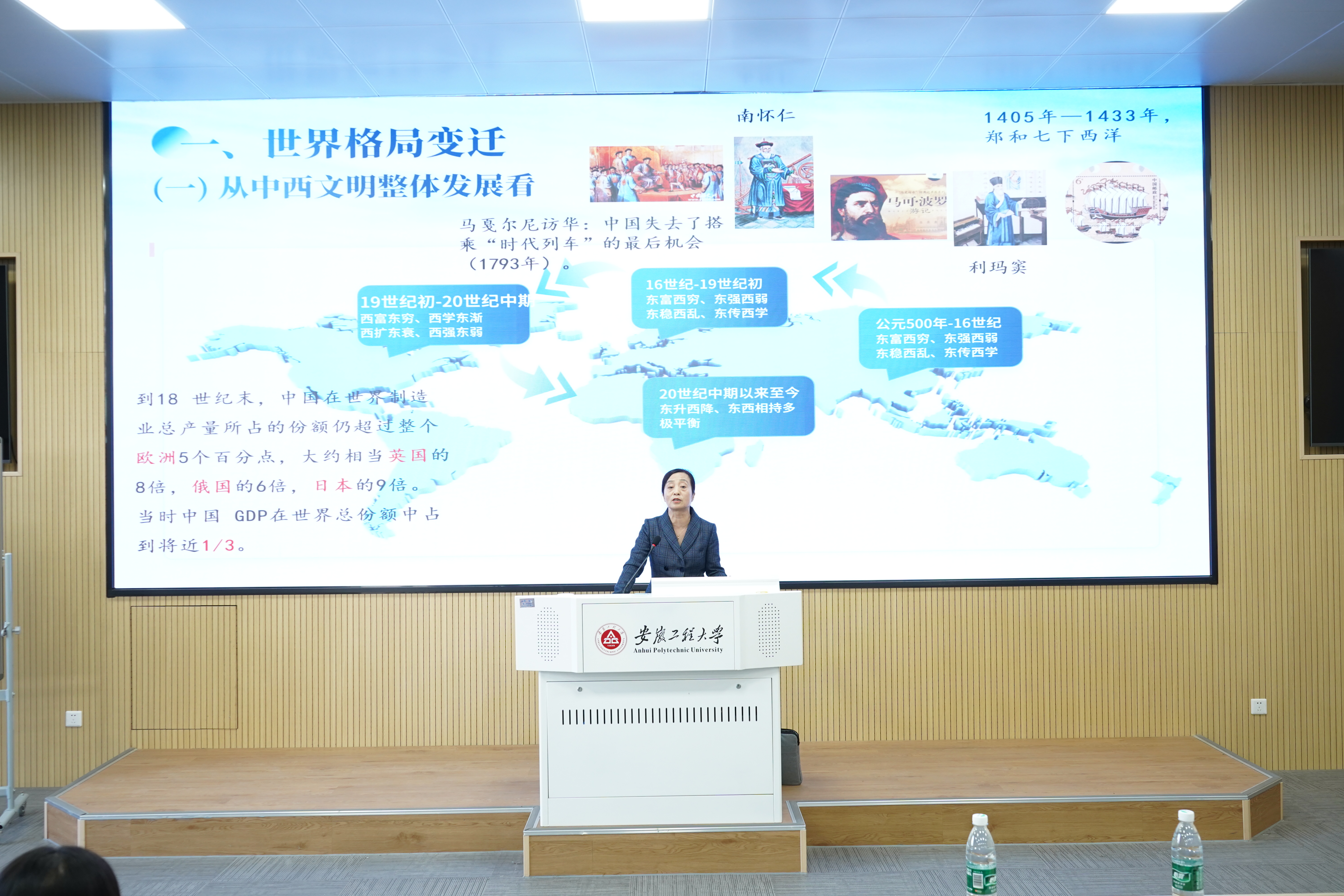 活动邀请芜湖市铸牢中华民族共同体意识宣讲团成员、人文学院副教授闫石作题为《文明新路与人类命运共同体》的报告。闫石从“世界怎么了、中国为什么能、人类怎么办”三个方面向大家深刻阐述了中华民族共同体意识,揭示了各民族间休戚与共、荣辱与共、生死与共、命运与共的深厚情谊。