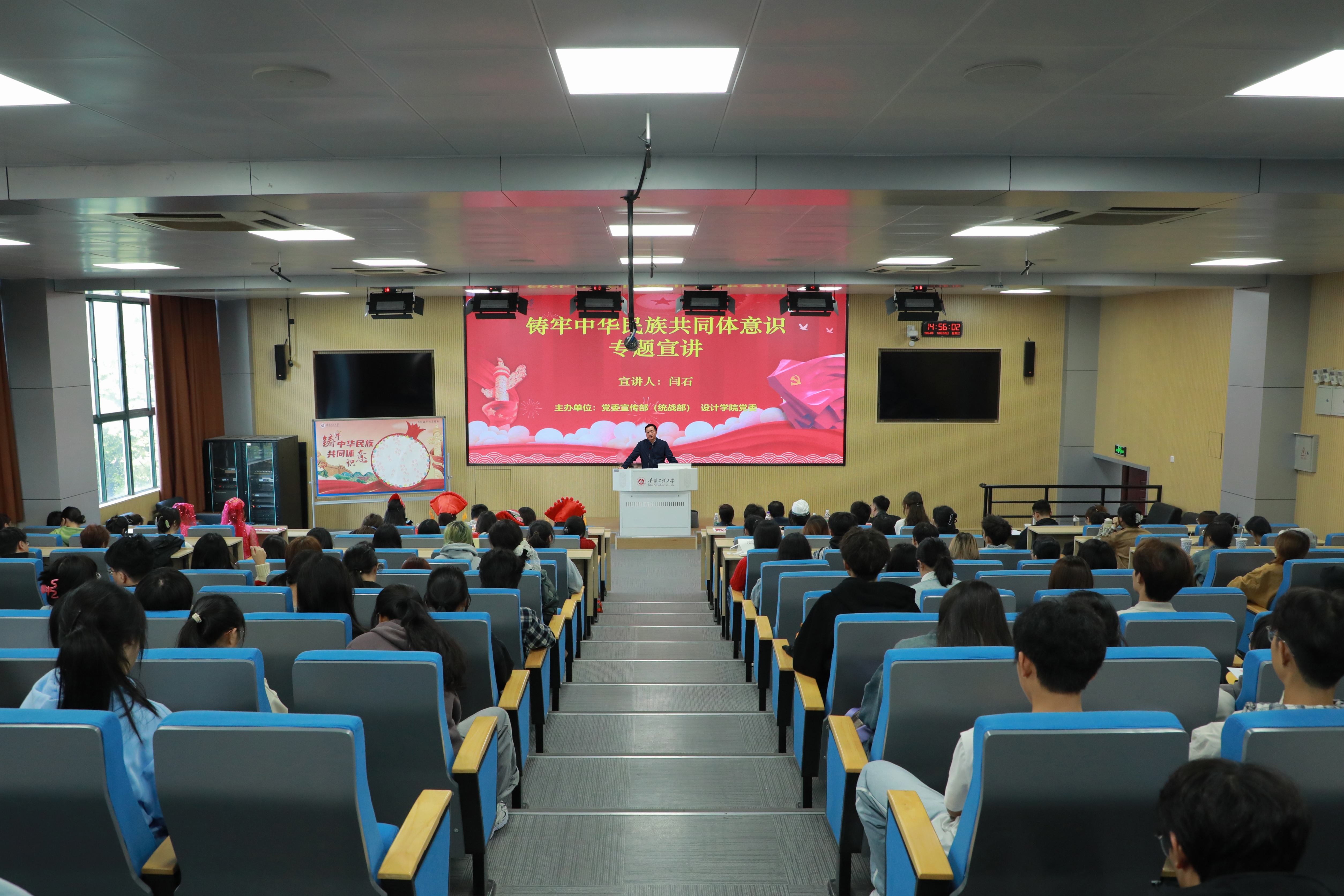 为深入学习贯彻习近平总书记关于加强和改进民族工作的重要思想,10月30日下午,校党委宣传部(统战部)联合设计学院党委在5教217组织开展“铸牢中华民族共同体意识”专题宣讲活动。校党委常委、宣传部(统战部)部长孙浩然出席,设计学院相关负责人、学院全体辅导员及各民族学生代表等150余人参加。