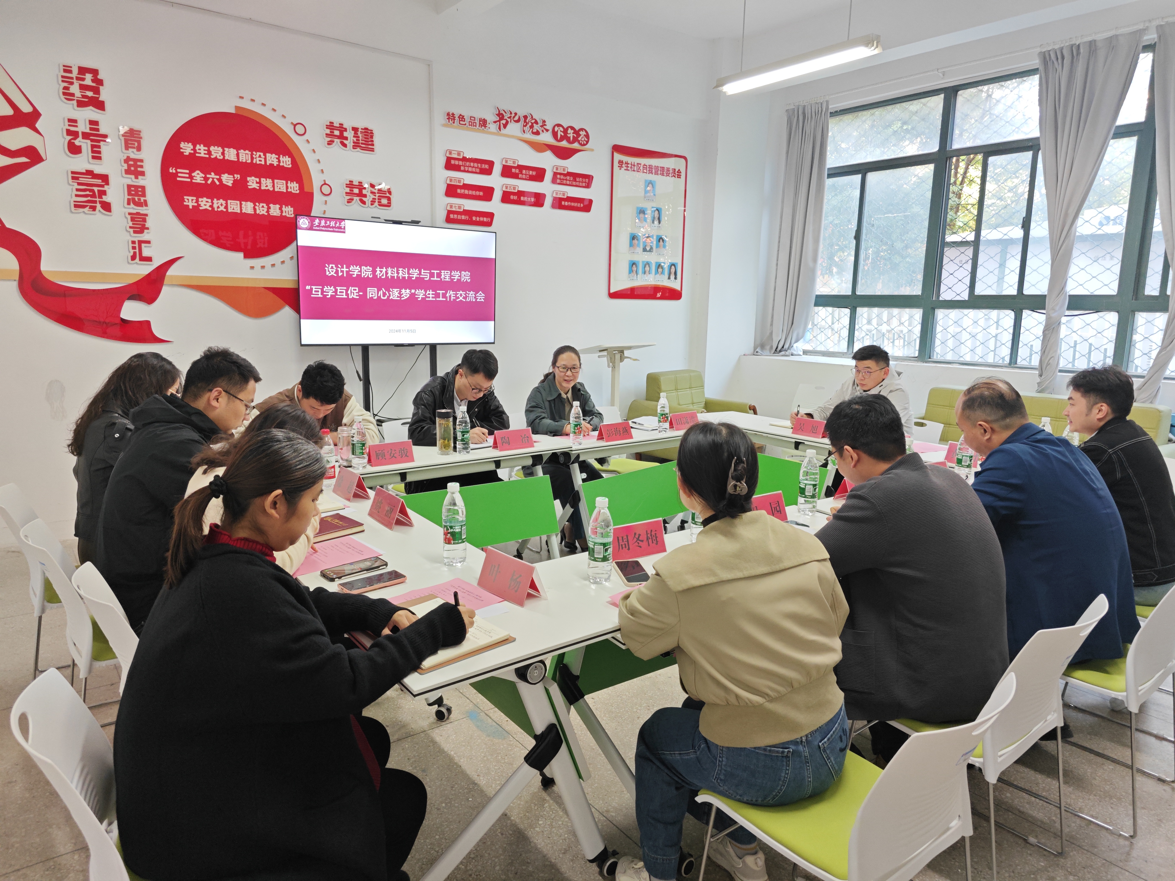 在双方交流环节,两院的学生工作负责人和辅导员们就心理健康、就业创业、学业帮扶、资助育人等学生工作中的热点难点问题进行了深入探讨和交流。大家纷纷表示,通过此次交流会,不仅增进了彼此的了解和友谊,还收获了许多宝贵的工作经验和启示。会议结束后,与会人集中参观了材料学院青年议事中心。大家对青年议事中心的建设和运营给予了高度评价,并表示希望未来能够进一步加强合作与交流。