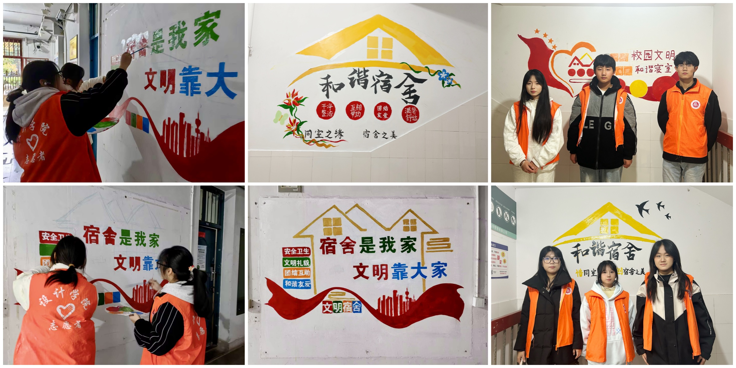 活动由“设计家”学生彩绘团队主导,他们以独特的设计视角和专业技能,以文明宿舍为创作理念,巧妙地融合了宿舍文化、专业特色和日常生活元素,赋予宿舍墙面新的生命,使之既美观又富有文化内涵。宿舍文化墙围绕学习生活、安全教育、和谐宿舍等主题,依据宿舍环境,覆盖楼道走廊。通过艺术与宿舍的紧密结合,不仅丰富了学生的校园生活,传递了安全、文明、和谐的社区理念,也提升了学生的实践能力和服务学生社区的责任意识。