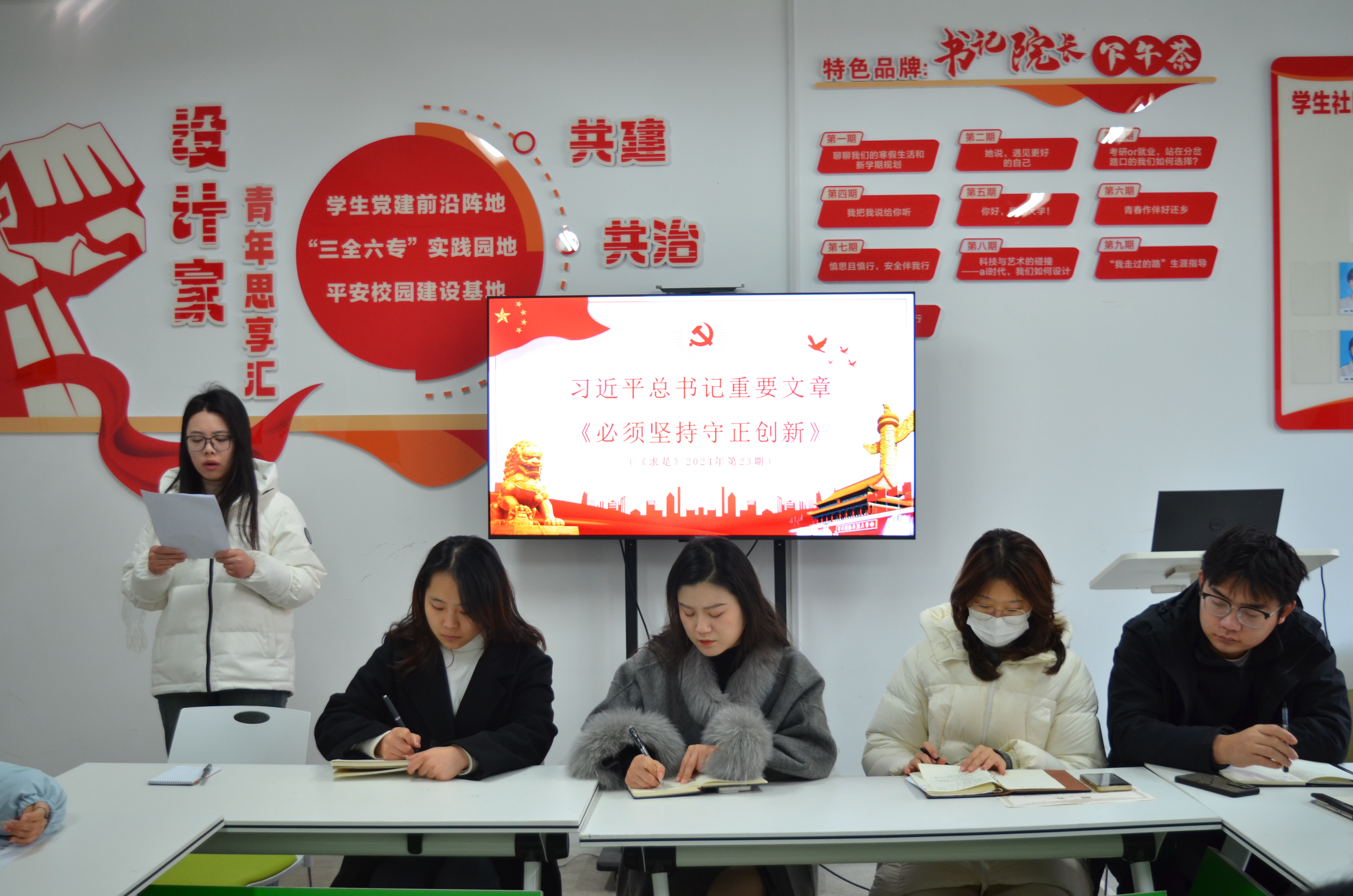 为深入学习贯彻习近平新时代中国特色社会主义思想,深刻认识守正创新的重要性,12月18日中午,我院于设计学院青年之家召开了团委理论学习中心组学习暨2024秋季学期第四次团委学生会工作会议。学院团委副书记田潇濛,学生会全体团学骨干参加本次会议。