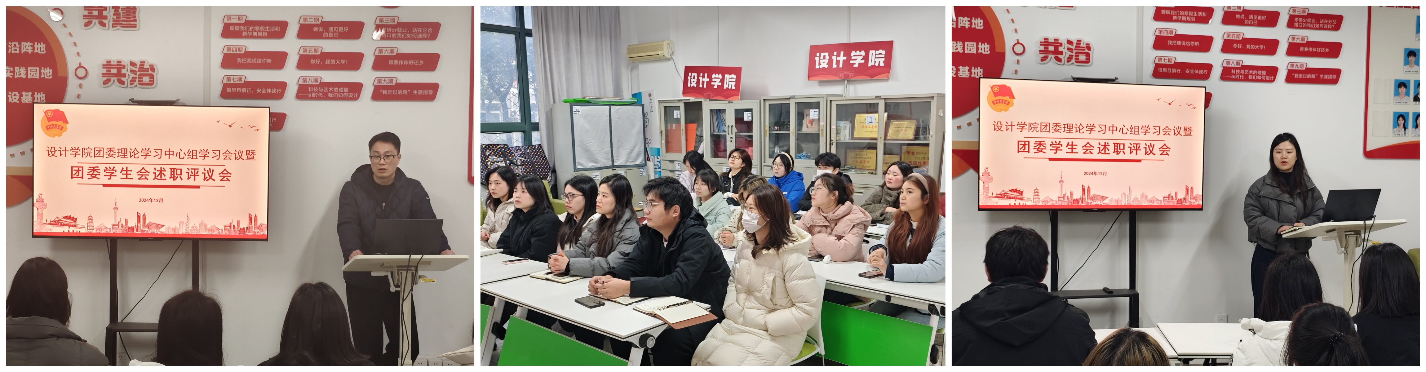 为进一步推进学生会组织深化改革成果落地见效,推动学生会工作再上新台阶,12月25日下午4:00,我院于设计学院青年之家召开团委理论学习中心组学习暨2024-2025第一学期团委学生会述职评议会。学院党委书记助理陶冶、团委副书记田潇濛以及全体团学骨干参加会议。
