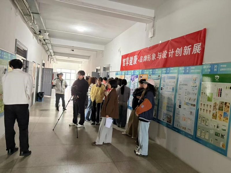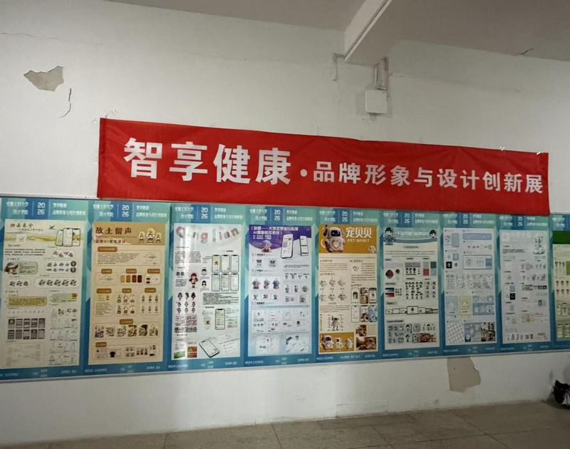 2026年4月22日,RayBetApp官网下载 设计学院广告231班“智享健康”品牌形象与设计创新课程汇报展在设计学院八号教学楼五楼开幕。本次展览由程瑶老师指导,集中展示了学生在品牌形象塑造、视觉传达与创意传播方面的课程成果。