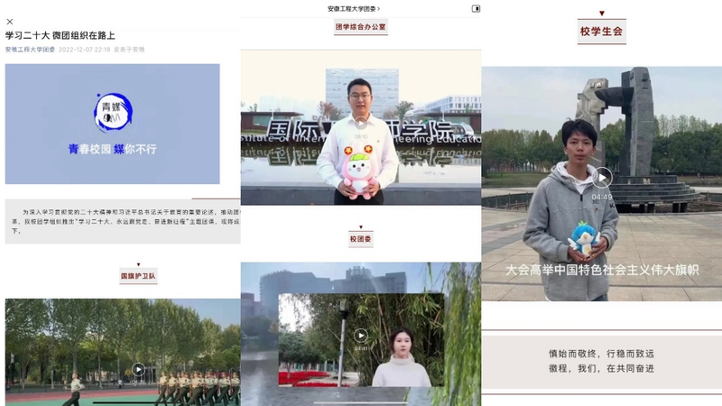 坚持组织带动与骨干引领相结合,多形式促进学习“入心”。校级学生组织坚持先学一步,结合工作职责,推出“学习党的二十大,微团组织在路上”的新媒体作品,展现学生组织的学习热情。举办“青春心向党,奋斗正当时”微团课视频创作大赛,评选一等奖3名。各级团骨干坚持以学习促思考,结合自身专业和经历,纷纷发表学习感悟,围绕教育、民生等主题在微信公众号推出3期“青谈 | 学习党的二十大 徽程青年有话说”话题分享。