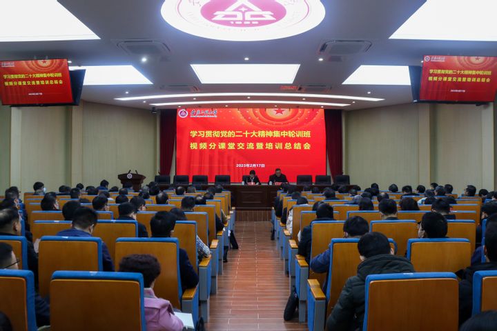 本网讯2月17日,学校学习贯彻党的二十大精神集中轮训班视频分课堂交流暨培训总结会在A座104召开,全体学员参加了会议。学校党委副书记、校党校校长苏国红出席了会议并讲话,会议由组织部部长、校党校副校长王弘主持。