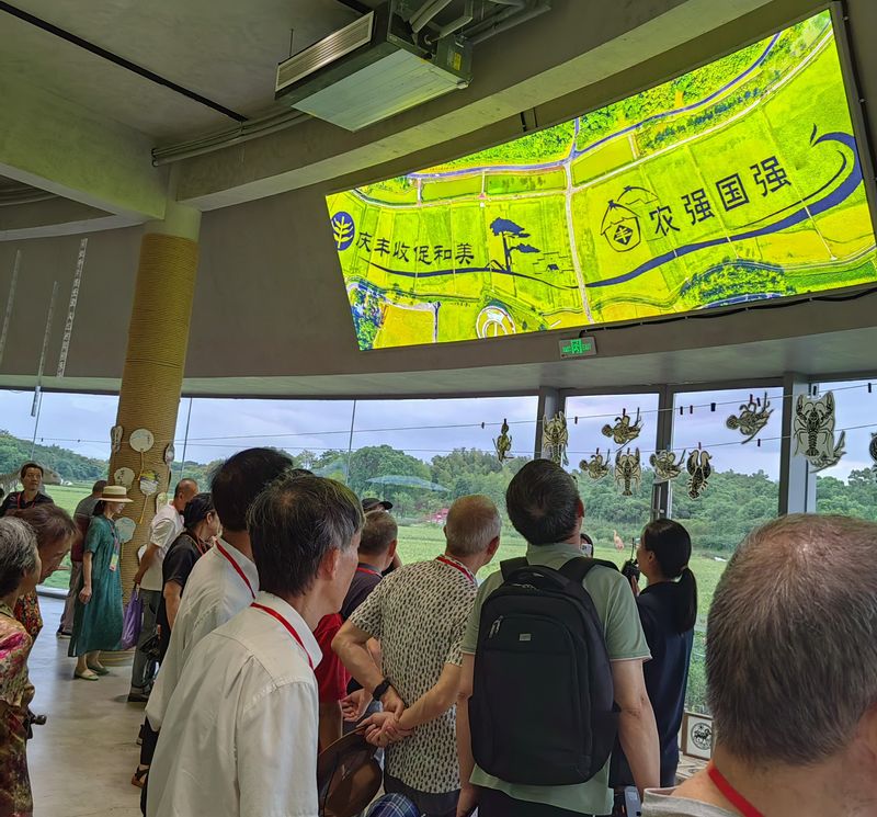 宣讲结束后,离退休党员到农民丰收节举办地鸠兹湾进行参观学习,深入了解城乡经济融合发展的示范和榜样。在讲解员的带领下,全体成员逐一参观了2023年中国农民丰收节全国主会场——农耕文化科普馆、稻田酒吧、鸠兹牧歌农场、乡村廉洁文化园、鸠兹湾供销社、生活美学馆等地,沉浸式体会我校杰出校友,安徽顶峰教育集团董事长、中国好人夏云兴以艺创赋能乡村振兴、以艺创共富乡村的建设理念和发展成果,深入了解“政府引导、农民主体、企业运营、村集体参与、市场化运作”的共建共享共富理念。