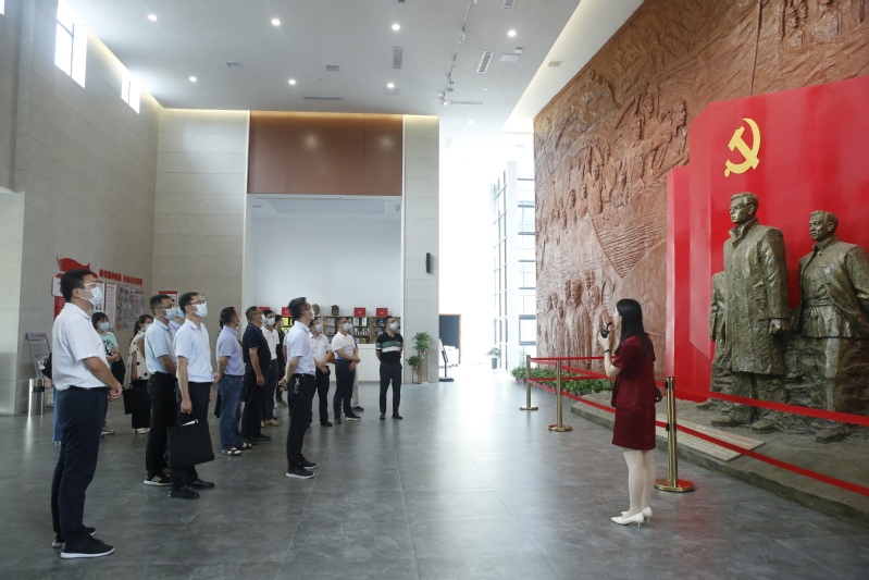 在第一任安徽省委书记王步文主题广场前,学员们向王步文烈士纪念雕像敬献花篮,并重温入党誓词。初心使命展陈馆内,学员们认真聆听王步文烈士革命事迹讲解,并为先烈的崇高品质而深受震撼。